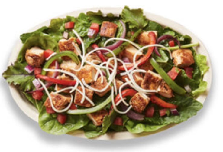 Salad with chicken, black beans, pico, fajita veggies & cheese. No dressing