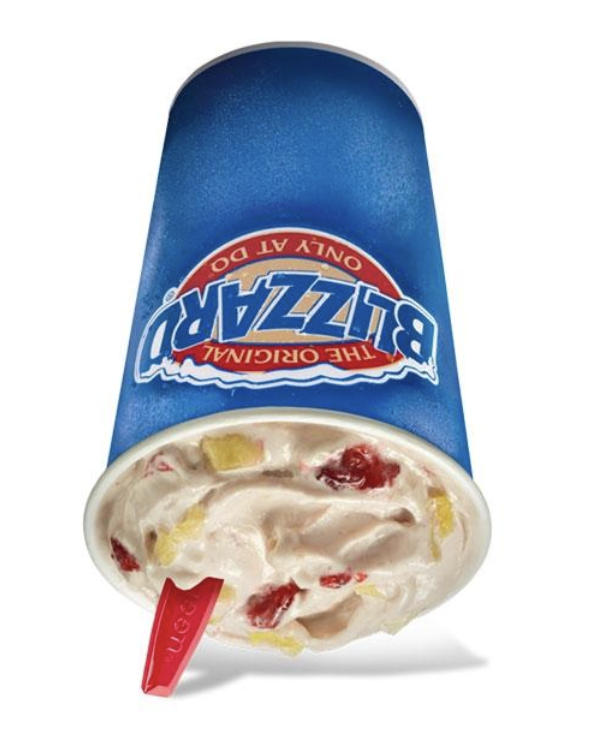 Mini banana split blizzard (one of the lowest calorie blizzards)
